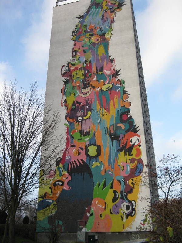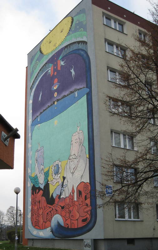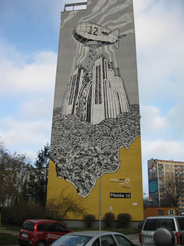 This is one of my favorite places in the Gdansk area. I discovered it a few years ago and I loved it. There are mural projects in the U.S. but nothing like this. The art does not necessarily make a silk purse out of a sow’s ear because it does not hide the fact that the buildings are classic socialist structures built in the early 1980’s, but it does make the area quite unique and pretty. The area used to be an airport and Lech Walesa lived there during his Solidarity times. If you have a chance to visit (very accessible via local bus), I highly recommend it. Wear comfortable shoes. 😉 If you click on this website then click on the paint roller you can see all the murals. These photos below are some of my favorite murals. The photo with only apartments shows the starkness of a building not with a mural.